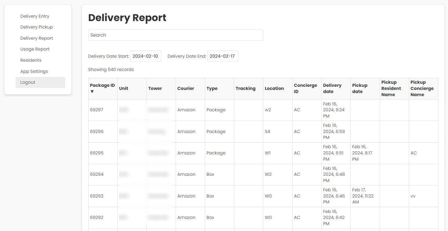 Configure limits and overage fees so concierges are notified of excessive deliveries and can report on potential chargebacks to residents